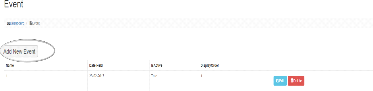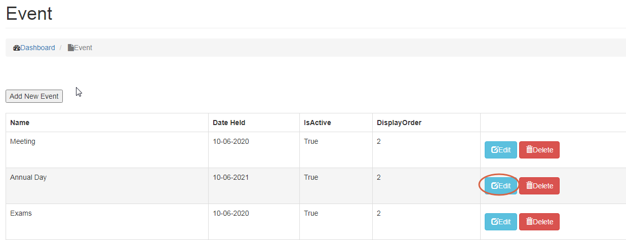 • To Delete an Event, click on Delete button.